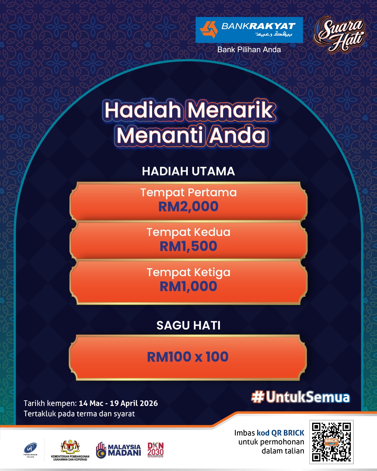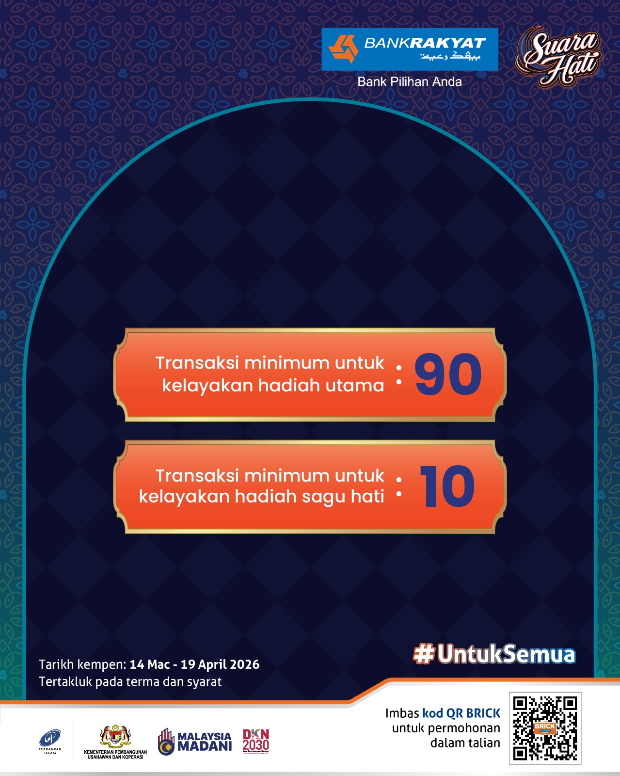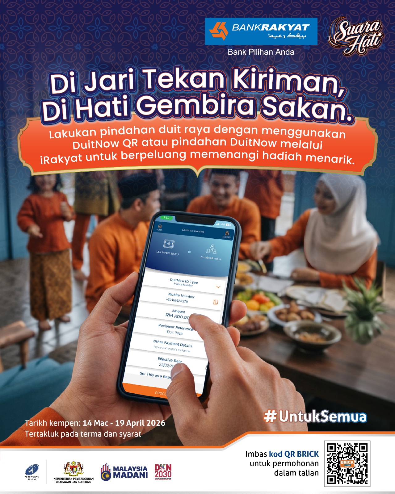 For more information, please visit the nearest branch or contact Bank Rakyat Call Centre at 1-300-80-5454