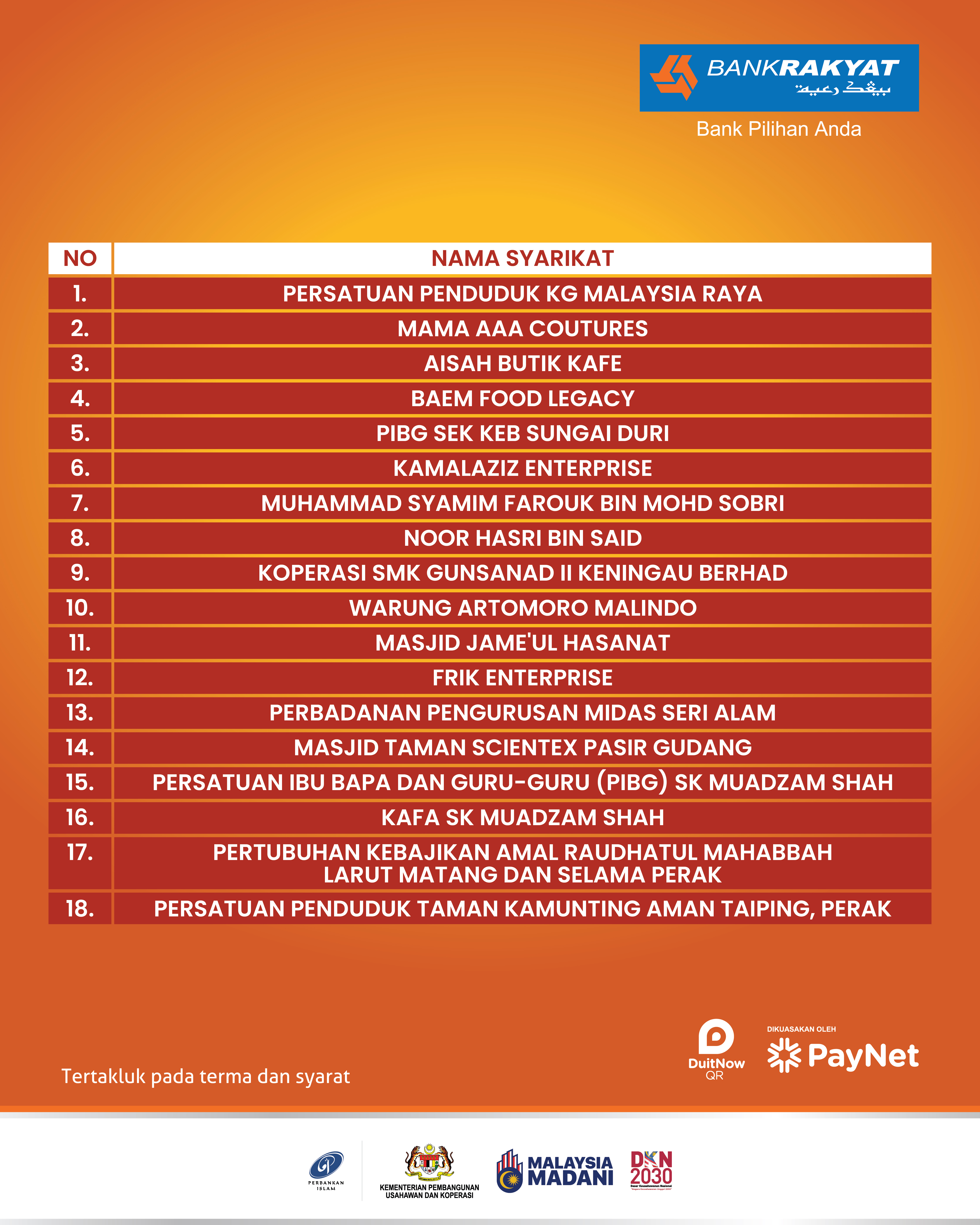 For more information, please visit the nearest branch or contact Bank Rakyat Call Centre at 1-300-80-5454